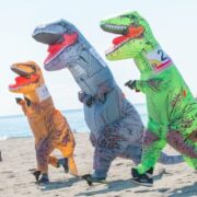 指定着ぐるみ :ファンで膨らませ、全身を覆うタイプのティラノサウルスの着ぐるみ。色の指定はございません。(参考:https://amzn.asia/d/hjvFSDA)